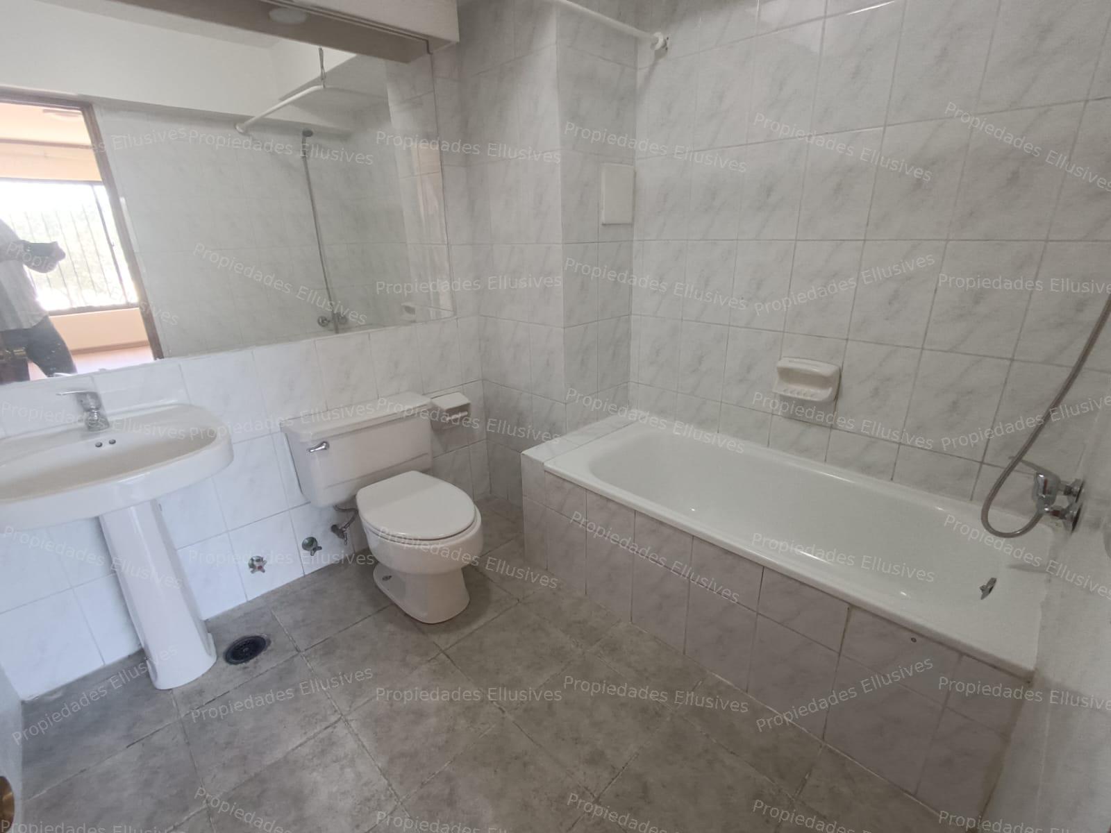 Se arrienda amplio departamento de 85 m² con excelente distribución. Cuenta con un living-comedor espacioso, cocina independiente totalmente amoblada, 3 dormitorios y 3 baños. Incluye estacionamiento privado techado y bodega.