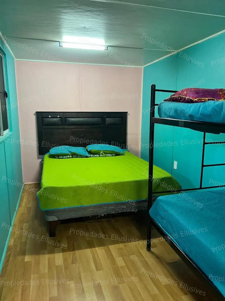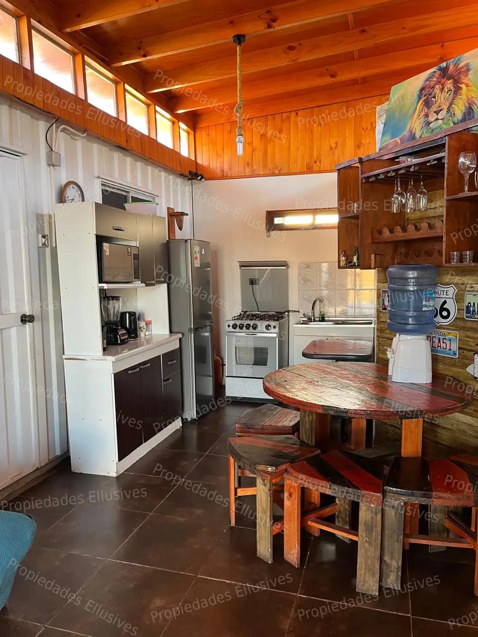 • Interior: Cabaña de 2 dormitorios, baño, cocina, comedor y terraza.