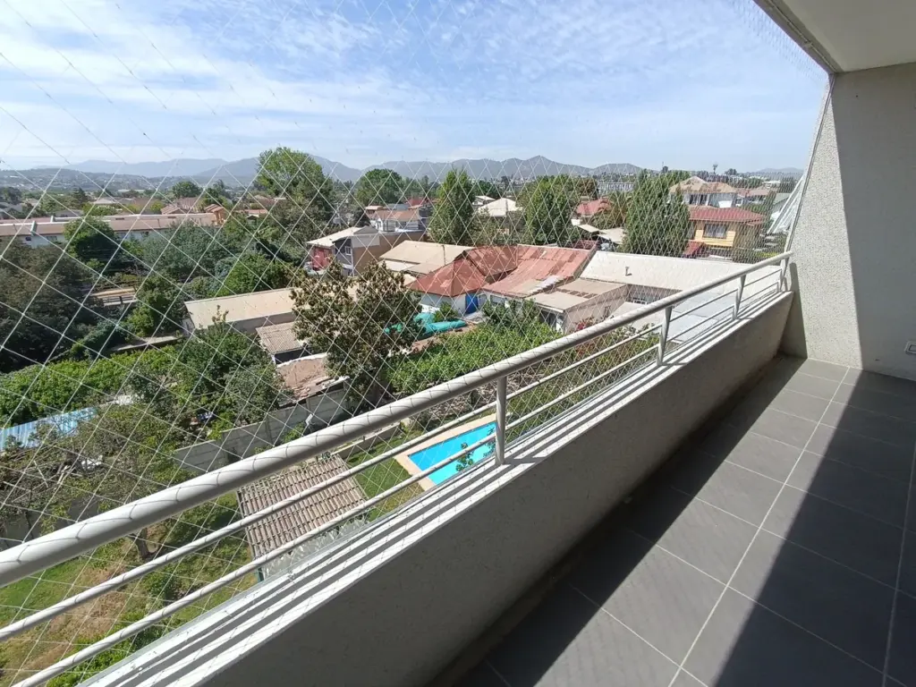 - Espacios Exteriores: 2 terrazas con mallas de seguridad. Una en el living con vista despejada a la Cordillera de la Costa y otra en el dormitorio principal.