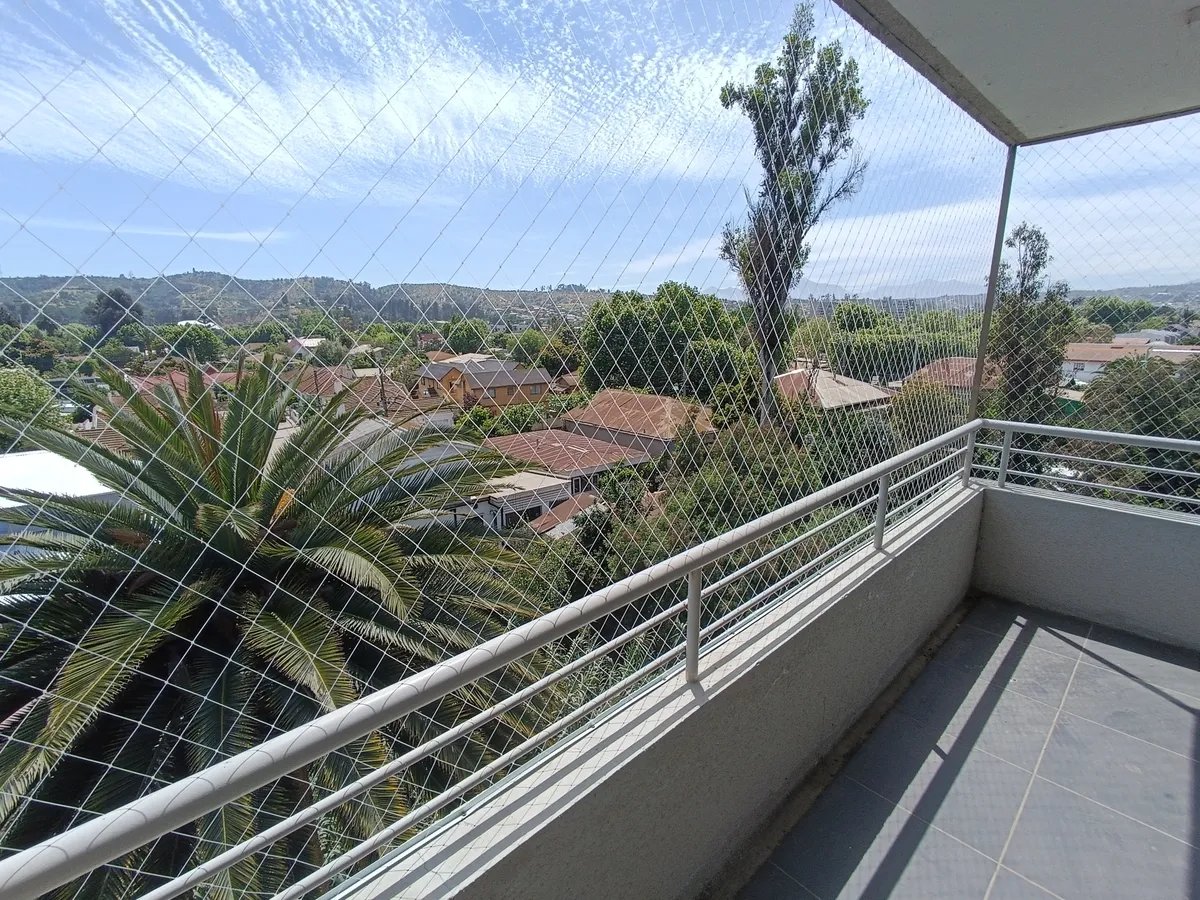 - Espacios Exteriores: 2 terrazas con mallas de seguridad. Una en el living con vista despejada a la Cordillera de la Costa y otra en el dormitorio principal.